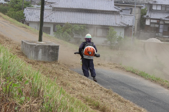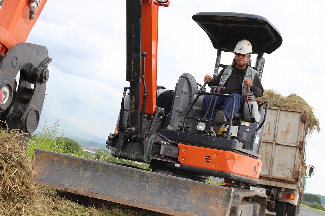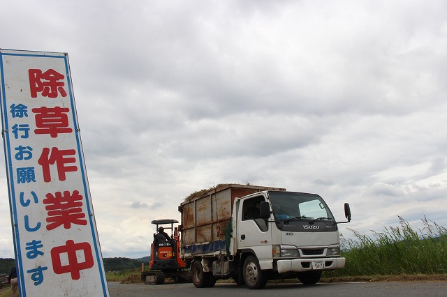 国交省及び市が管轄する菊池川の堤防の除草作業です。